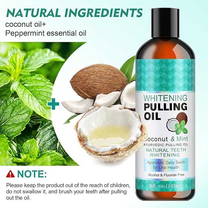 • Pulling Oil Mouthwash: Coconut oil extraction provides deep cleaning, keeps your mouth and gums healthy, and makes you smile more confidently.
