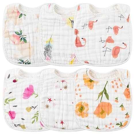 Unique Design: 6 pieces of baby bibs, we have specially designed different styles of patterns for your baby, such as stars, flamingos, flowers, feathers, etc. It can meet the different replacement needs of babies.
