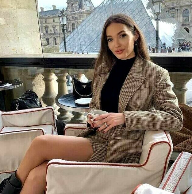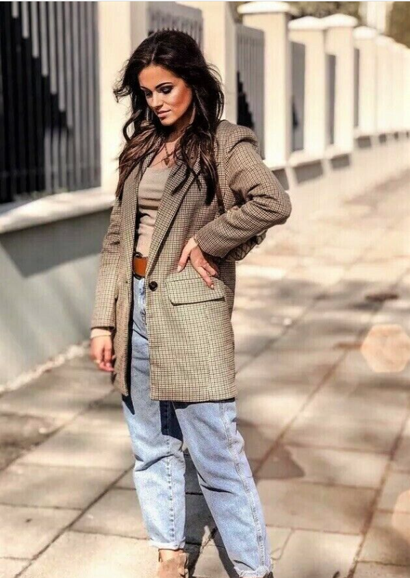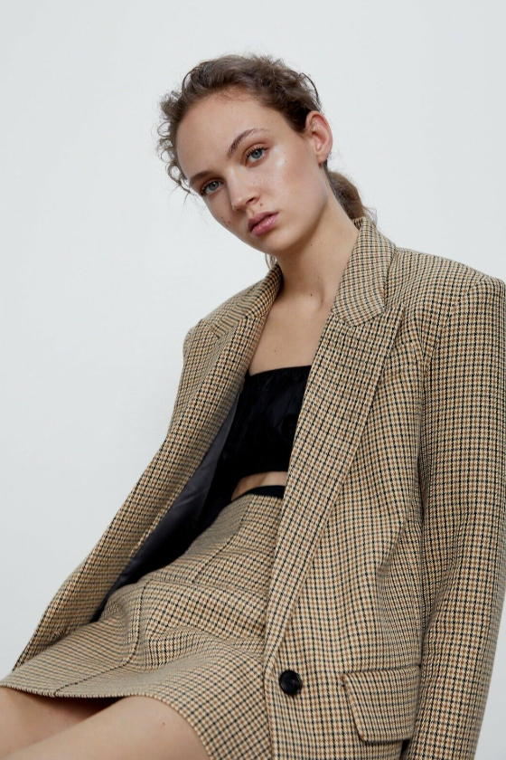 CHECK MASCULINE-STYLE BLAZER IN A CAMEL BROWN & BLACK COLOUR
