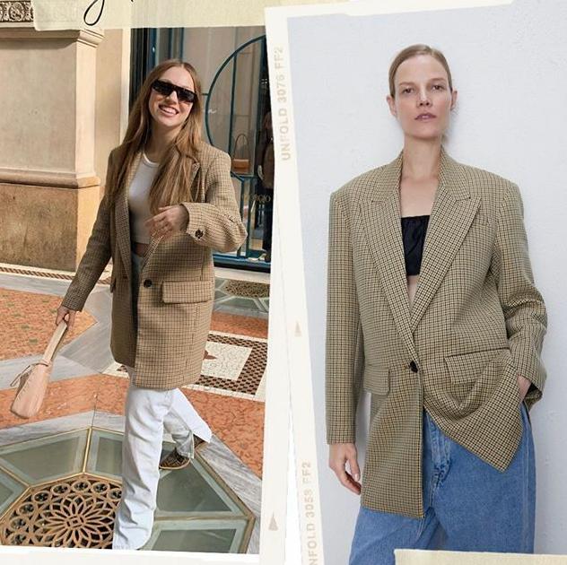 ZARA CAMEL/BLACK/BROWN OVERSIZED PLAID CHECK MASCULINE BLAZER SIZE M