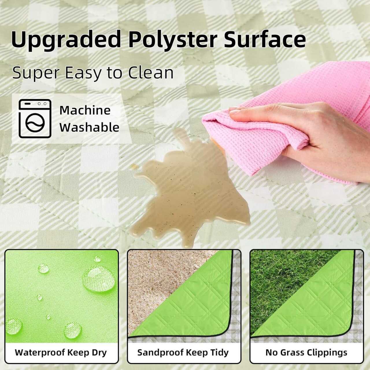 Easy to Clean & Machine Washable: Outdoor picnic blanket is super easy to clean due to its double-sided waterproof surface and backing, easily shake & wipe off dirt, mud, wet grass, and beach sand. And you could put it into washing machine to save your time and liberate both hands